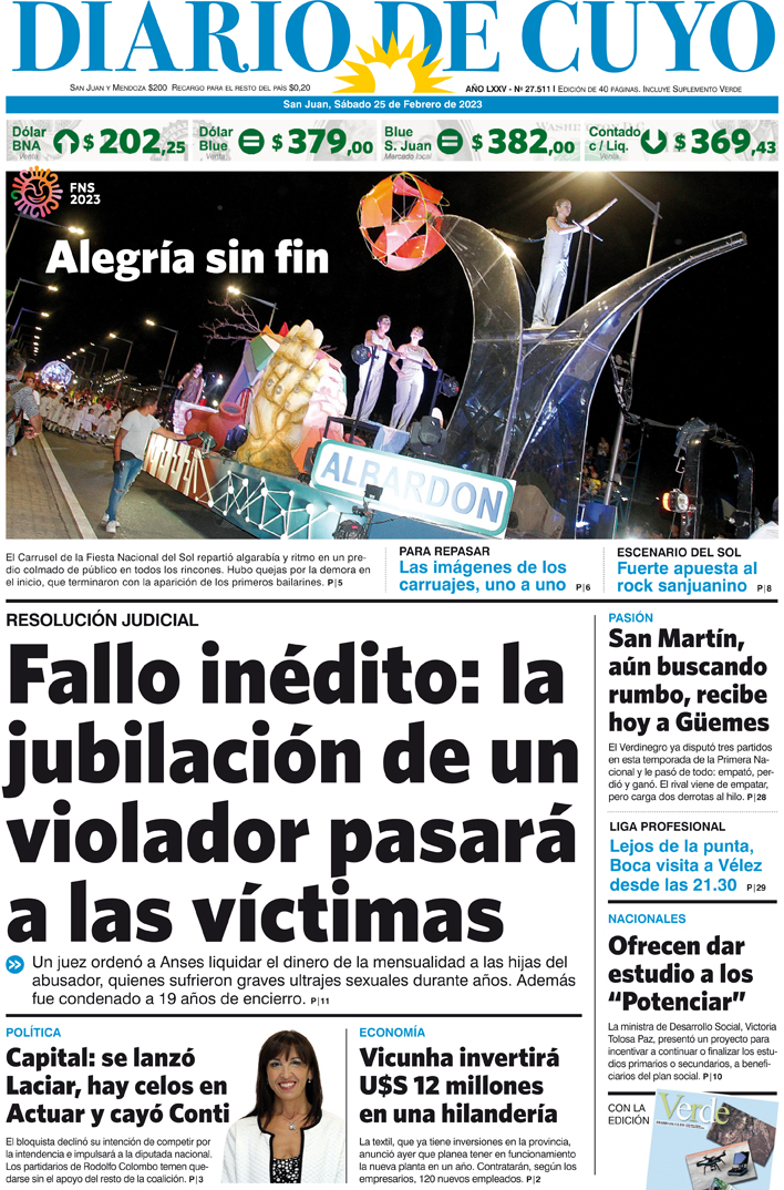 Diario de Cuyo | HOME | Noticias Tapa Edición 25 de Febrero de 2023 Por Redacción Diario de Cuyo 25/02/2023 · 0:00 Escuchar la noticia Escuchar la noticia Your browser doesn’t support HTML5 audio Ver los comentarios ›