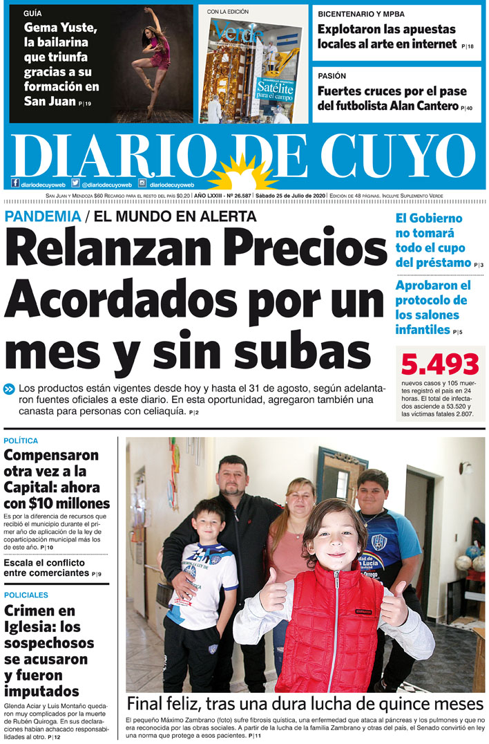 Diario de Cuyo | HOME | Noticias Tapa Edición 25 de Julio del 2020 Por Redacción Diario de Cuyo 24/07/2020 · 0:00 Escuchar la noticia Escuchar la noticia Your browser doesn’t support HTML5 audio Ver los comentarios ›