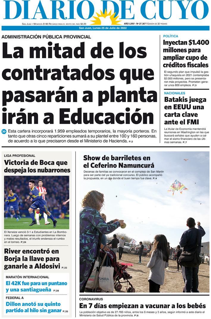 Diario de Cuyo | HOME | Noticias Tapa Edición 25 de Julio del 2022 Por Redacción Diario de Cuyo 25/07/2022 · 0:00 Escuchar la noticia Escuchar la noticia Your browser doesn’t support HTML5 audio Ver los comentarios ›