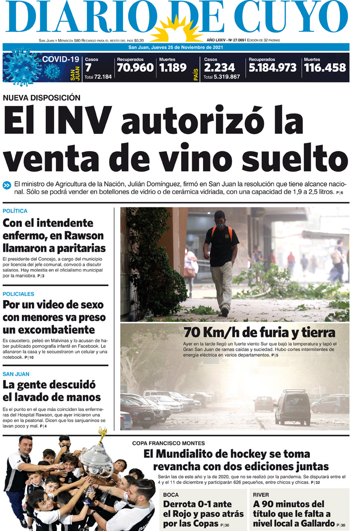 Diario de Cuyo | HOME | Noticias Tapa Edición 25 de Noviembre del 2021 Por Redacción Diario de Cuyo 25/11/2021 · 0:00 Escuchar la noticia Escuchar la noticia Your browser doesn’t support HTML5 audio Ver los comentarios ›