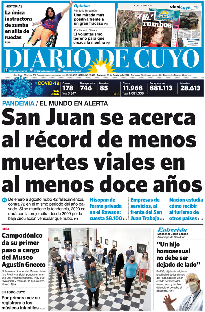 Diario de Cuyo | HOME | Noticias Tapa Edición 25 de Octubre del 2020 Por Redacción Diario de Cuyo 24/10/2020 · 0:00 Escuchar la noticia Escuchar la noticia Your browser doesn’t support HTML5 audio Ver los comentarios ›
