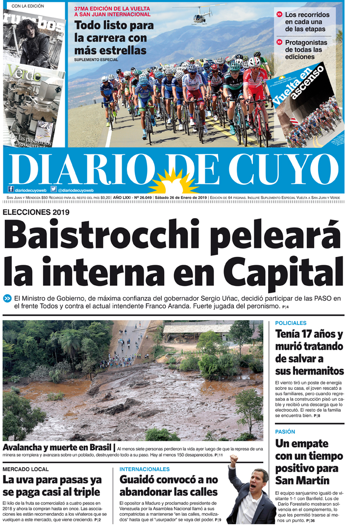 Diario de Cuyo | HOME | Noticias | Tapa Edición Tapa Edición 26 de Enero de 2019 Por Redacción Diario de Cuyo 26/01/2019 · 0:00 Escuchar la noticia Escuchar la noticia Your browser doesn’t support HTML5 audio Tapa Edición Ver los comentarios ›