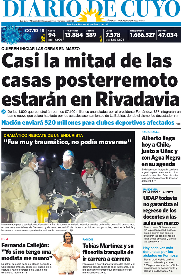 Diario de Cuyo | HOME | Noticias | Tapa Edición Tapa Edición 26 de Enero de 2021 Por Redacción Diario de Cuyo 25/01/2021 · 0:00 Escuchar la noticia Escuchar la noticia Your browser doesn’t support HTML5 audio Tapa Edición Ver los comentarios ›