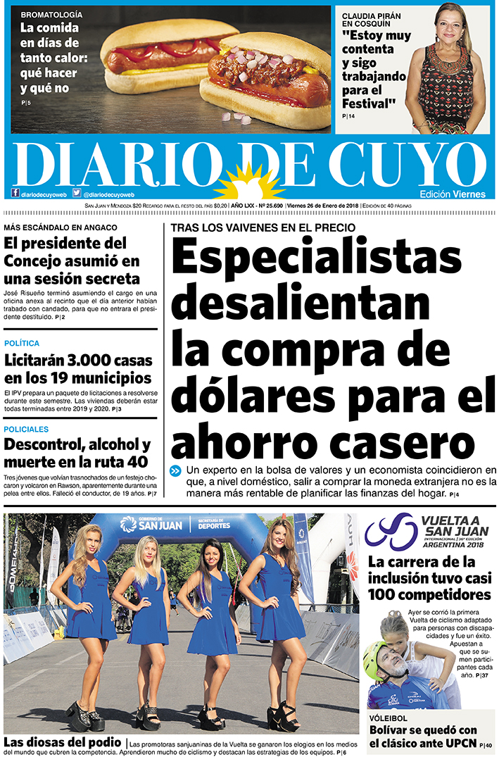 Diario de Cuyo | HOME | Noticias | Tapa Edición Tapa Edición 26 de Enero del 2018 Por Redacción Diario de Cuyo 26/01/2018 · 0:00 Escuchar la noticia Escuchar la noticia Your browser doesn’t support HTML5 audio Tapa Edición Ver los comentarios ›