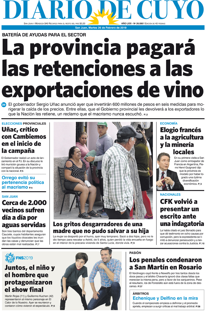 Diario de Cuyo | HOME | Noticias | Tapa Edición Tapa Edición 26 de Febrero de 2019 Por Redacción Diario de Cuyo 26/02/2019 · 0:00 Escuchar la noticia Escuchar la noticia Your browser doesn’t support HTML5 audio Tapa Edición Ver los comentarios ›