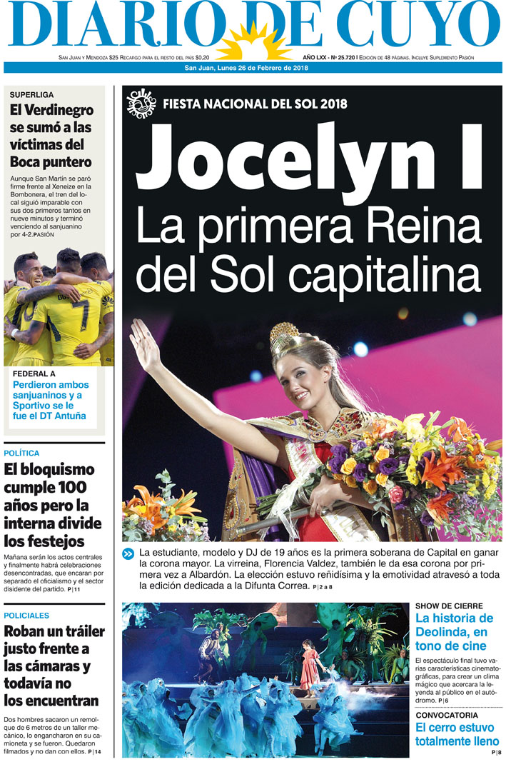 Diario de Cuyo | HOME | Noticias | Tapa Edición Tapa Edición 26 de Febrero del 2018 Por Redacción Diario de Cuyo 26/02/2018 · 0:00 Escuchar la noticia Escuchar la noticia Your browser doesn’t support HTML5 audio Tapa Edición Ver los comentarios ›