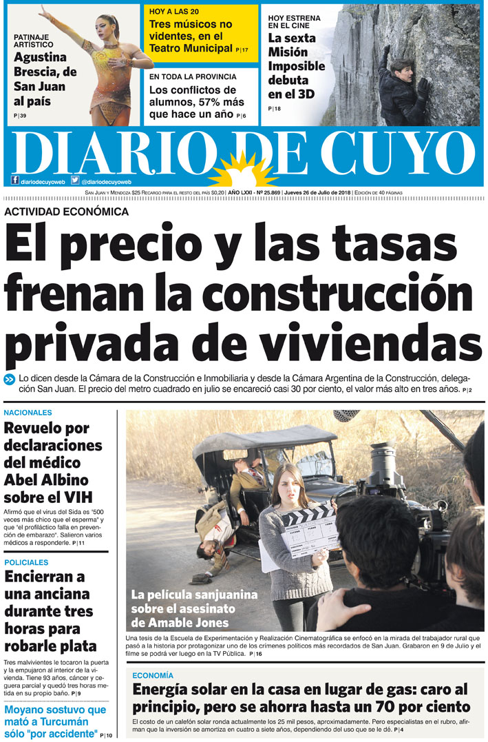 Diario de Cuyo | HOME | Noticias | Tapa Edición Tapa Edición 26 de Julio de 2018 Por Redacción Diario de Cuyo 26/07/2018 · 0:00 Escuchar la noticia Escuchar la noticia Your browser doesn’t support HTML5 audio Tapa Edición Ver los comentarios ›