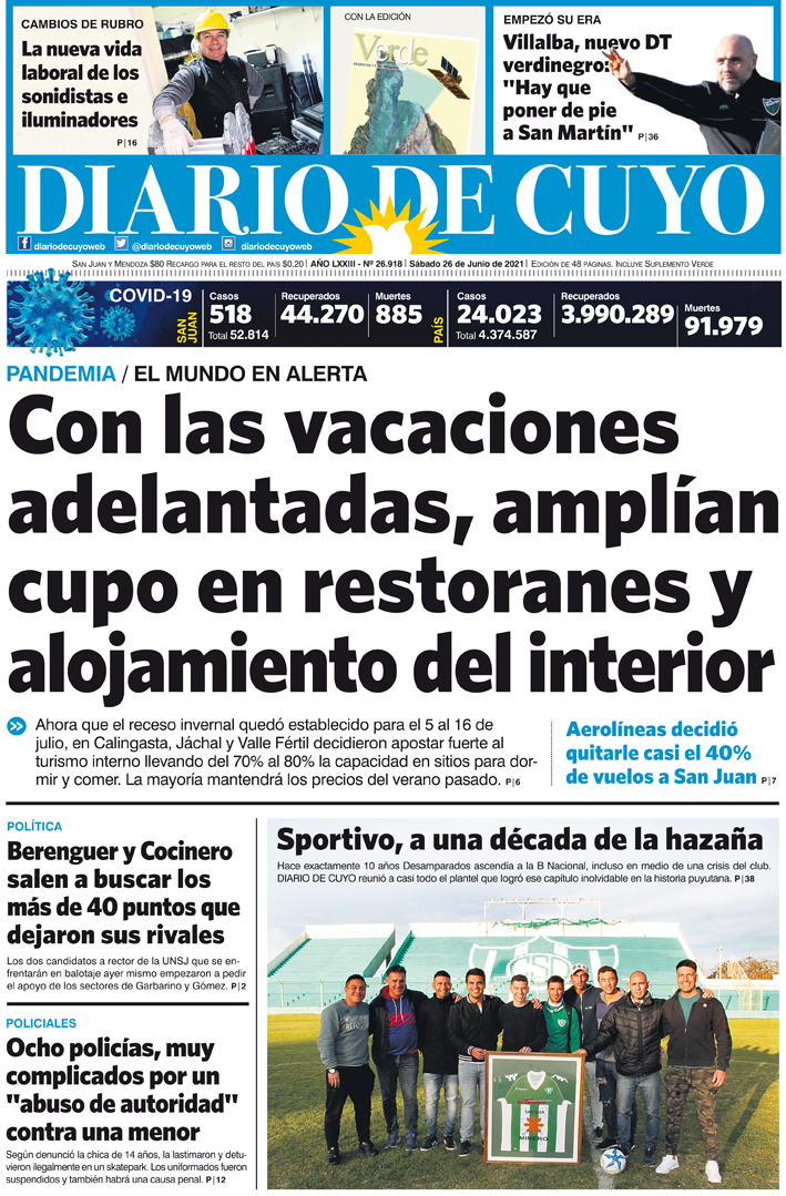 Diario de Cuyo | HOME | Noticias Tapa Edición 26 de Junio del 2021 Por Redacción Diario de Cuyo 25/06/2021 · 0:00 Escuchar la noticia Escuchar la noticia Your browser doesn’t support HTML5 audio Ver los comentarios ›