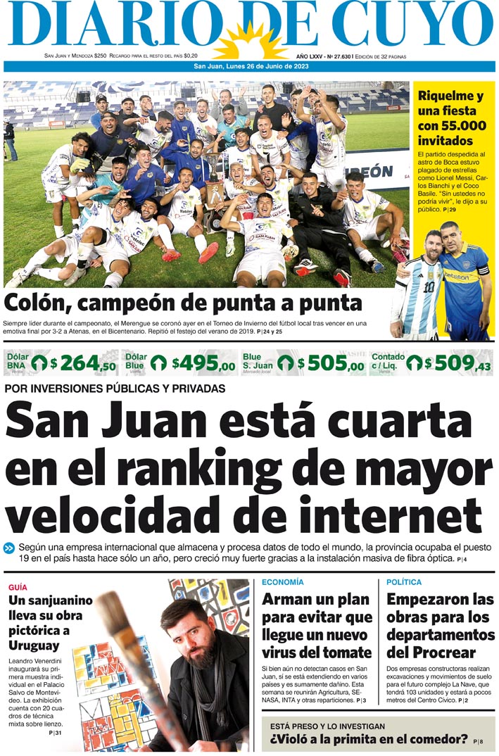 Diario de Cuyo | HOME | Noticias Tapa Edición 26 de Junio del 2023 Por Redacción Diario de Cuyo 25/06/2023 · 0:00 Escuchar la noticia Escuchar la noticia Your browser doesn’t support HTML5 audio Ver los comentarios ›