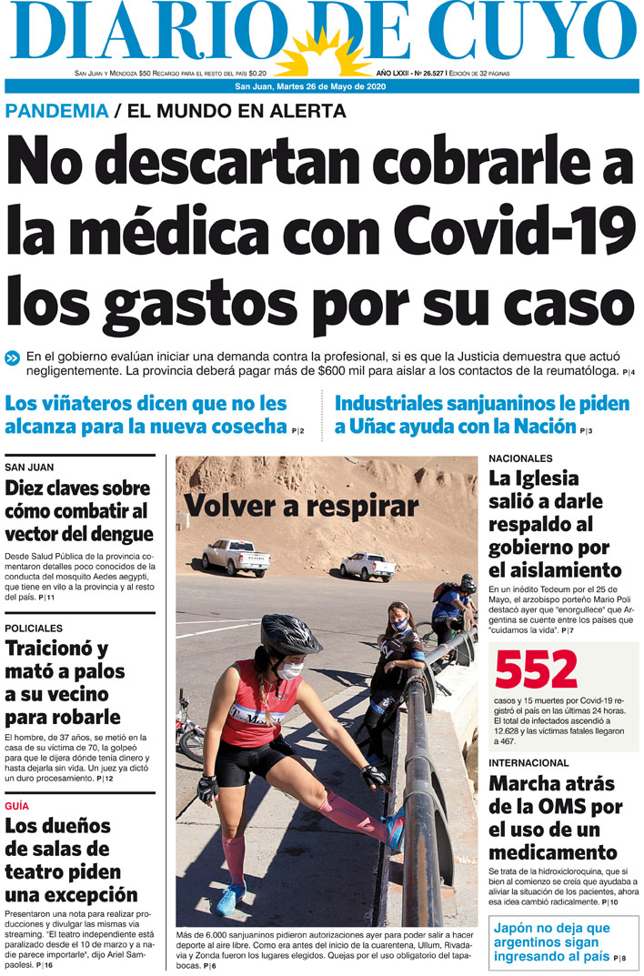 Diario de Cuyo | HOME | Noticias Tapa Edición 26 de Mayo del 2020 Por Redacción Diario de Cuyo 25/05/2020 · 0:00 Escuchar la noticia Escuchar la noticia Your browser doesn’t support HTML5 audio Ver los comentarios ›