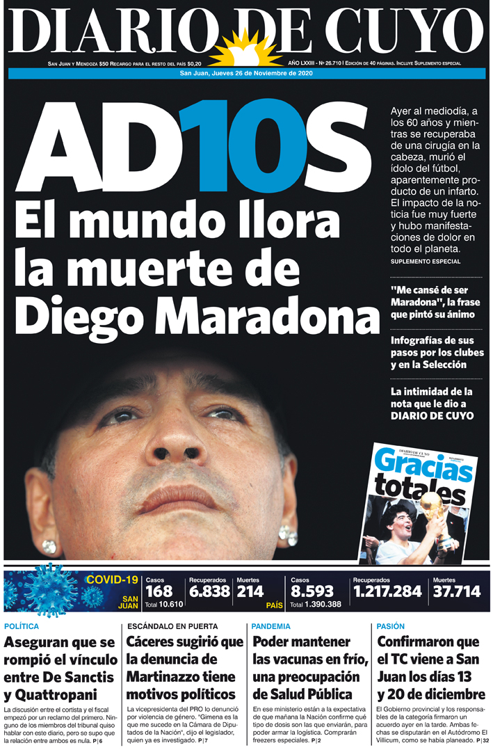 Diario de Cuyo | HOME | Noticias | Tapa Edición Tapa Edición 26 de Noviembre de 2020 Por Redacción Diario de Cuyo 25/11/2020 · 0:00 Escuchar la noticia Escuchar la noticia Your browser doesn’t support HTML5 audio Tapa Edición Ver los comentarios ›