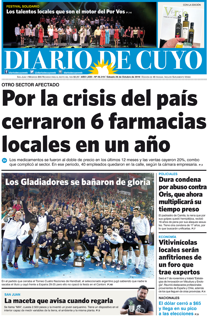 Diario de Cuyo | HOME | Noticias | Tapa Edición Tapa Edición 26 de Octubre 2019 Por Redacción Diario de Cuyo 26/10/2019 · 0:00 Escuchar la noticia Escuchar la noticia Your browser doesn’t support HTML5 audio Tapa Edición Ver los comentarios ›