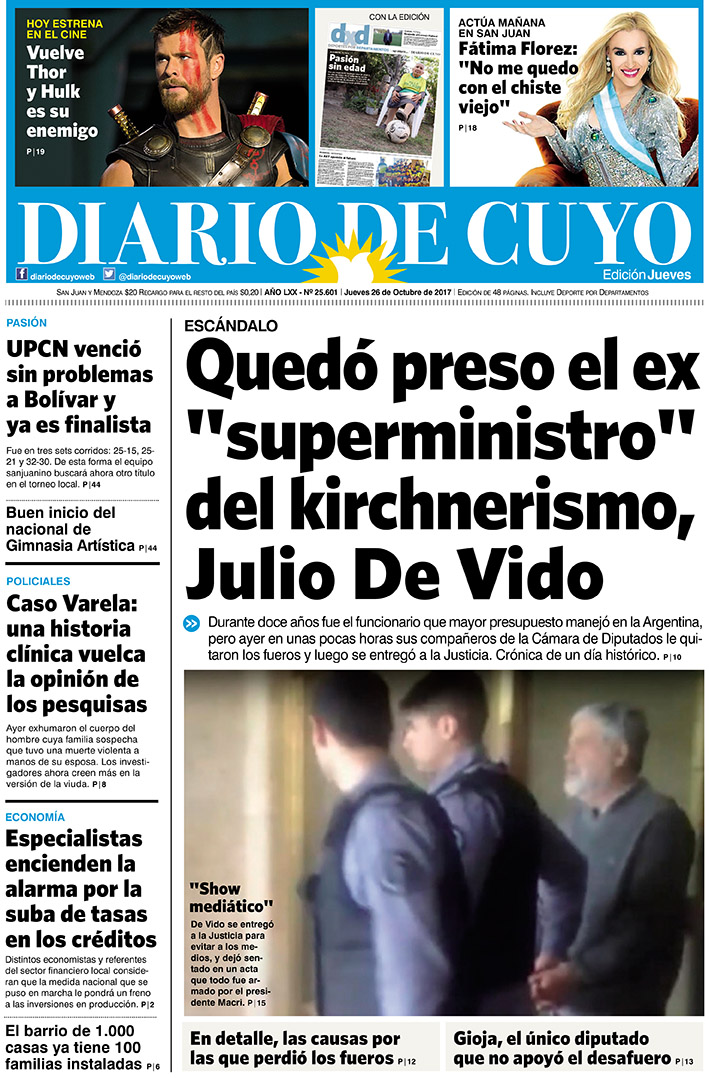 Diario de Cuyo | HOME | Noticias | Tapa Edición Tapa Edición 26 de Octubre del 2017 Por Redacción Diario de Cuyo 26/10/2017 · 0:00 Escuchar la noticia Escuchar la noticia Your browser doesn’t support HTML5 audio Tapa Edición Ver los comentarios ›