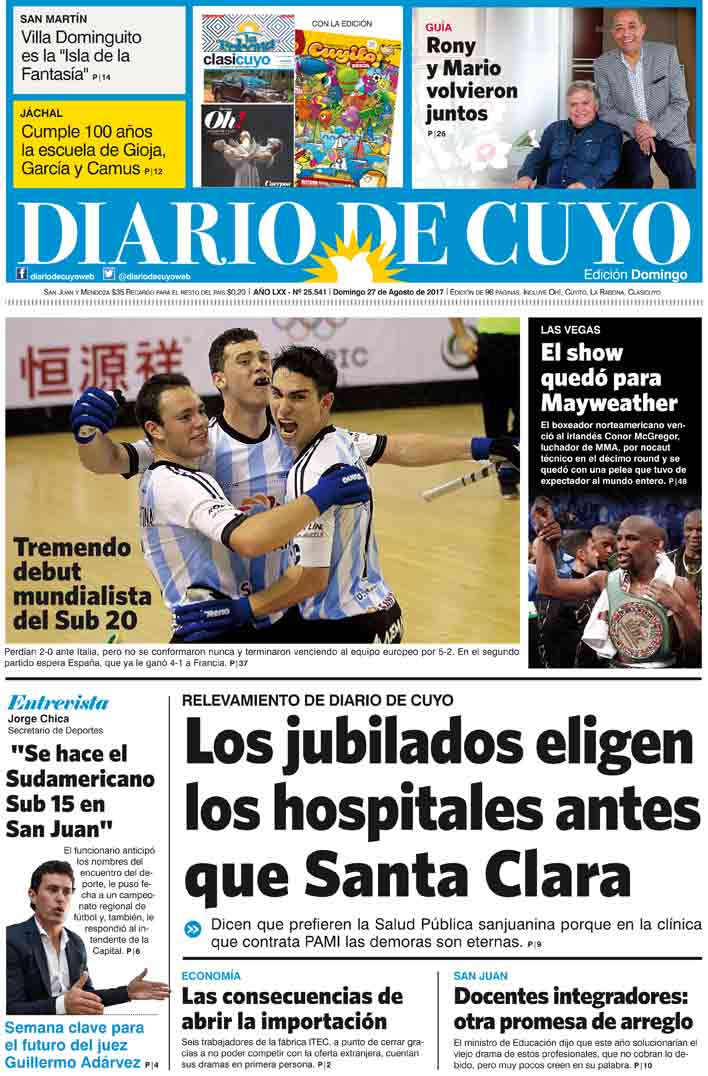 Diario de Cuyo | HOME | Noticias Tapa Edición 27 de Agosto de 2017 Por Redacción Diario de Cuyo 27/08/2017 · 0:00 Escuchar la noticia Escuchar la noticia Your browser doesn’t support HTML5 audio Ver los comentarios ›
