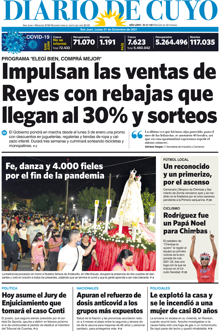 Diario de Cuyo | HOME | Noticias Tapa Edición 27 de Diciembre del 2021 Por Redacción Diario de Cuyo 27/12/2021 · 0:00 Escuchar la noticia Escuchar la noticia Your browser doesn’t support HTML5 audio Ver los comentarios ›