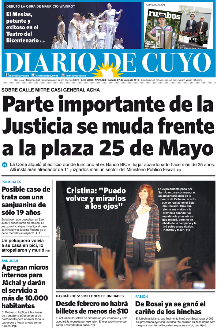 Diario de Cuyo | HOME | Noticias | Tapa Edición Tapa Edición 27 de Julio 2019 Por Redacción Diario de Cuyo 27/07/2019 · 0:00 Escuchar la noticia Escuchar la noticia Your browser doesn’t support HTML5 audio Tapa Edición Ver los comentarios ›