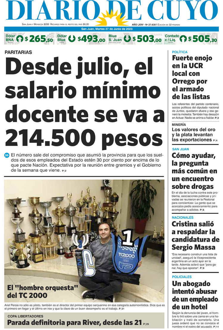 Diario de Cuyo | HOME | Noticias Tapa Edición 27 de Junio de 2023 Por Redacción Diario de Cuyo 26/06/2023 · 0:00 Escuchar la noticia Escuchar la noticia Your browser doesn’t support HTML5 audio Ver los comentarios ›
