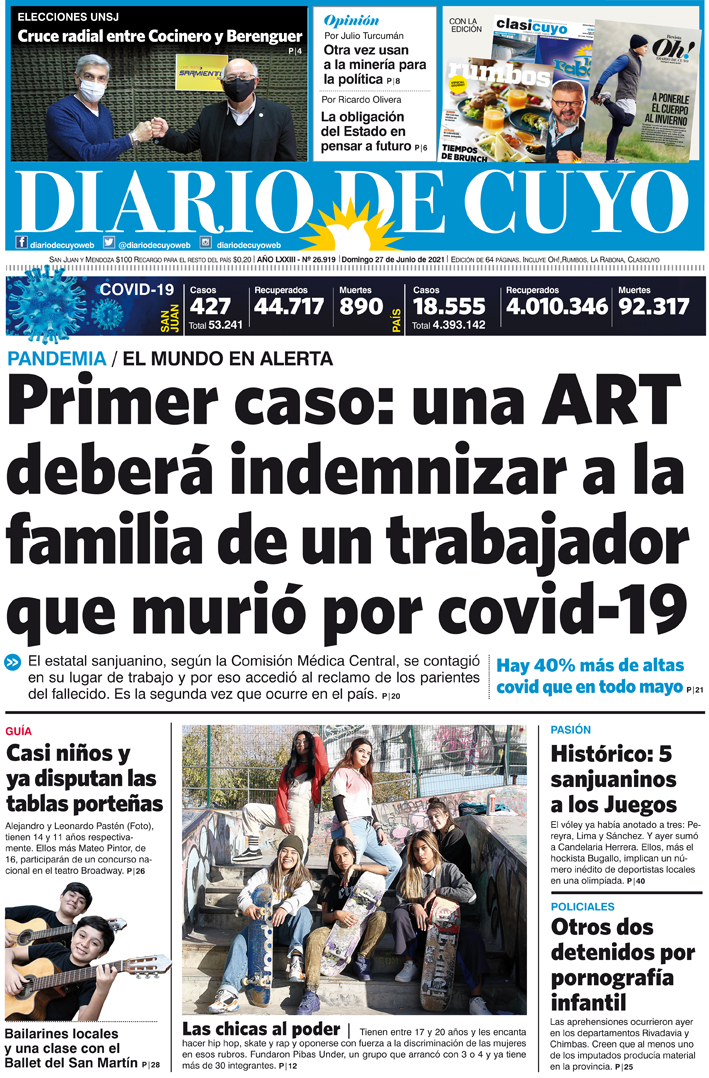 Diario de Cuyo | HOME | Noticias Tapa Edición 27 de Junio del 2021 Por Redacción Diario de Cuyo 27/06/2021 · 0:00 Escuchar la noticia Escuchar la noticia Your browser doesn’t support HTML5 audio Ver los comentarios ›