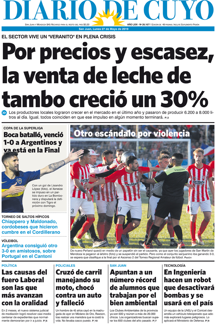 Diario de Cuyo | HOME | Noticias | Tapa Edición Tapa Edición 27 de Mayo 2019 Por Redacción Diario de Cuyo 26/05/2019 · 0:00 Escuchar la noticia Escuchar la noticia Your browser doesn’t support HTML5 audio Tapa Edición Ver los comentarios ›