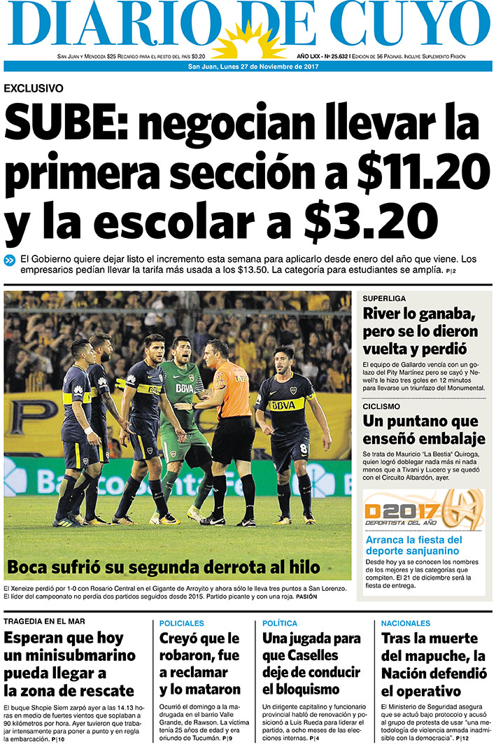 Diario de Cuyo | HOME | Noticias | Tapa Edición Tapa Edición 27 de Noviembre del 2017 Por Redacción Diario de Cuyo 27/11/2017 · 0:00 Escuchar la noticia Escuchar la noticia Your browser doesn’t support HTML5 audio Tapa Edición Ver los comentarios ›