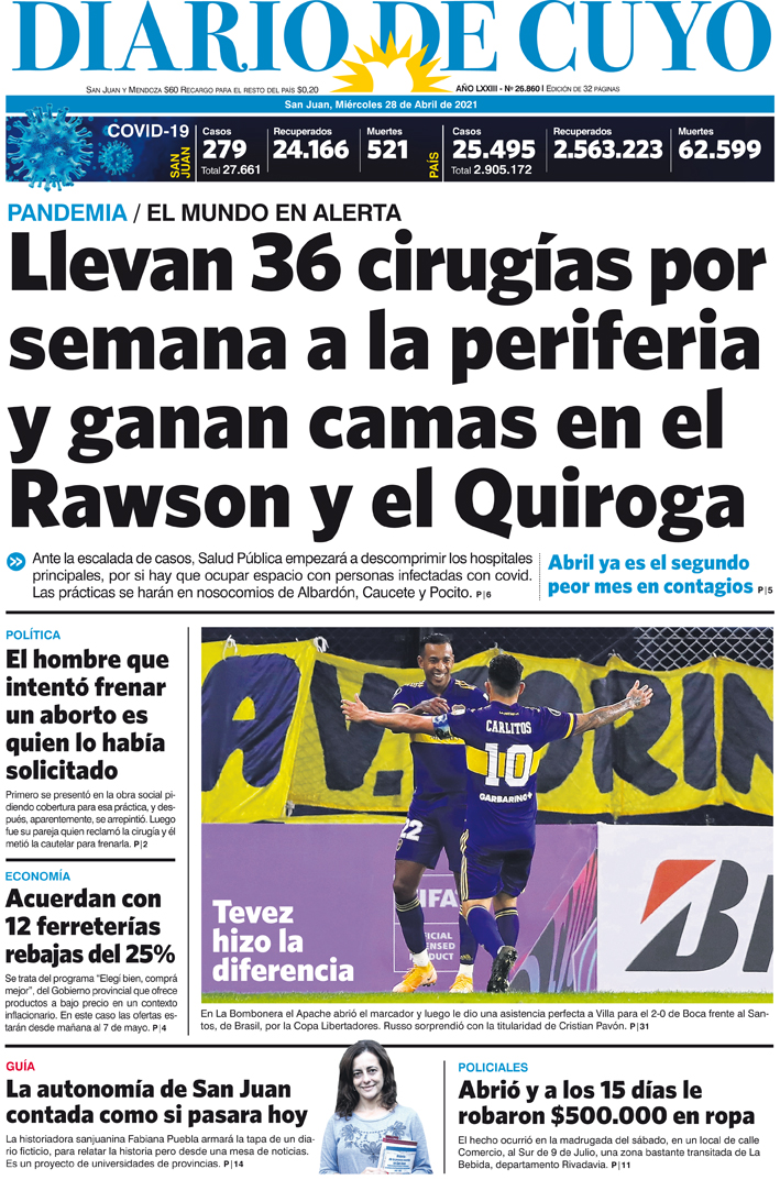 Diario de Cuyo | HOME | Noticias Tapa Edición 28 de Abril del 2021 Por Redacción Diario de Cuyo 27/04/2021 · 0:00 Escuchar la noticia Escuchar la noticia Your browser doesn’t support HTML5 audio Ver los comentarios ›