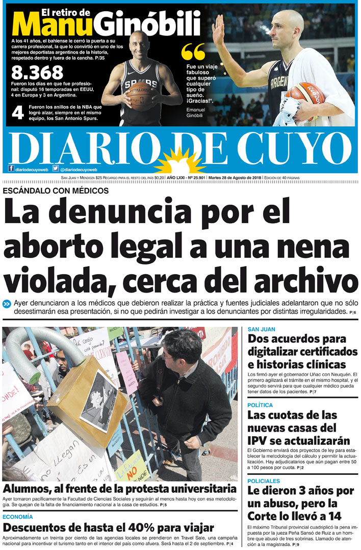 Diario de Cuyo | HOME | Noticias | Tapa Edición Tapa Edición 28 de Agosto 2018 Por Redacción Diario de Cuyo 28/08/2018 · 0:00 Escuchar la noticia Escuchar la noticia Your browser doesn’t support HTML5 audio Tapa Edición Ver los comentarios ›
