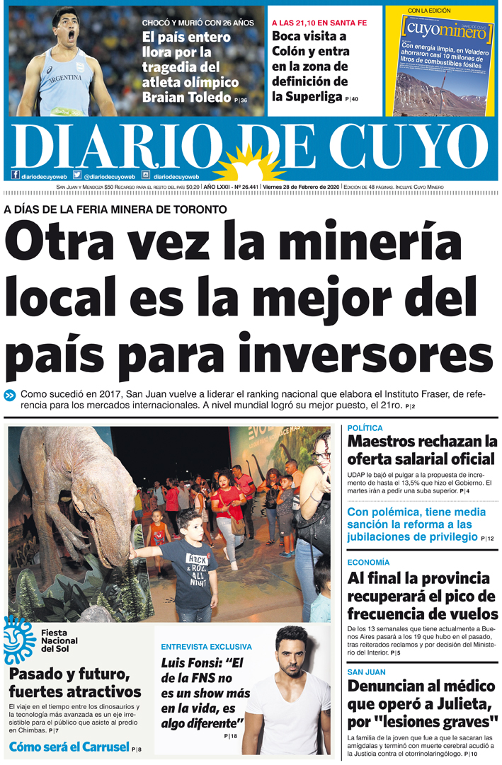 Diario de Cuyo | HOME | Noticias | Tapa Edición Tapa Edición 28 de Febrero de 2020 Por Redacción Diario de Cuyo 27/02/2020 · 0:00 Escuchar la noticia Escuchar la noticia Your browser doesn’t support HTML5 audio Tapa Edición Ver los comentarios ›