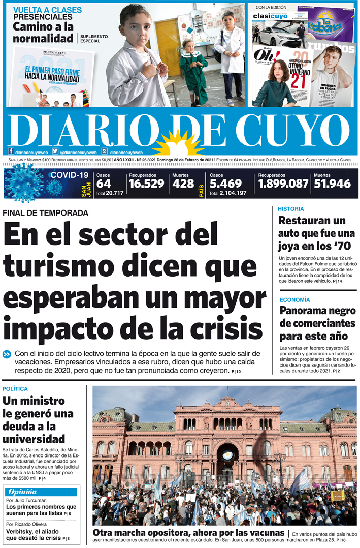 Diario de Cuyo | HOME | Noticias | Tapa Edición Tapa Edición 28 de Febrero de 2021 Por Redacción Diario de Cuyo 27/02/2021 · 0:00 Escuchar la noticia Escuchar la noticia Your browser doesn’t support HTML5 audio Tapa Edición Ver los comentarios ›