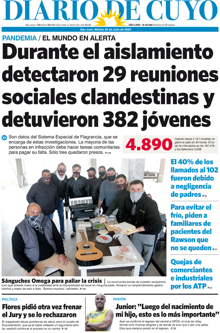 Diario de Cuyo | HOME | Noticias Tapa Edición 28 de Julio del 2020 Por Redacción Diario de Cuyo 27/07/2020 · 0:00 Escuchar la noticia Escuchar la noticia Your browser doesn’t support HTML5 audio Ver los comentarios ›