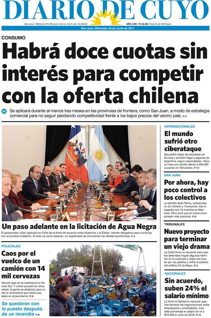 Diario de Cuyo | HOME | Noticias Tapa Edición 28 de Junio de 2017 Por Redacción Diario de Cuyo 27/06/2017 · 0:00 Escuchar la noticia Escuchar la noticia Your browser doesn’t support HTML5 audio Ver los comentarios ›