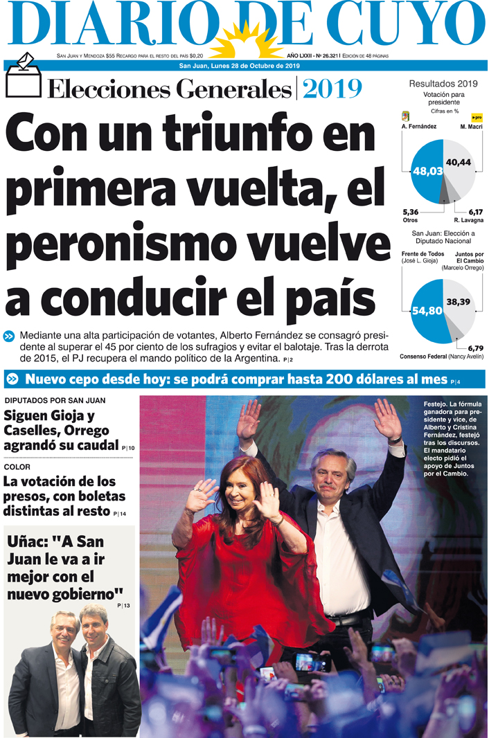 Diario de Cuyo | HOME | Noticias | Tapa Edición Tapa Edición 28 de Octubre 2019 Por Redacción Diario de Cuyo 28/10/2019 · 0:00 Escuchar la noticia Escuchar la noticia Your browser doesn’t support HTML5 audio Tapa Edición Ver los comentarios ›