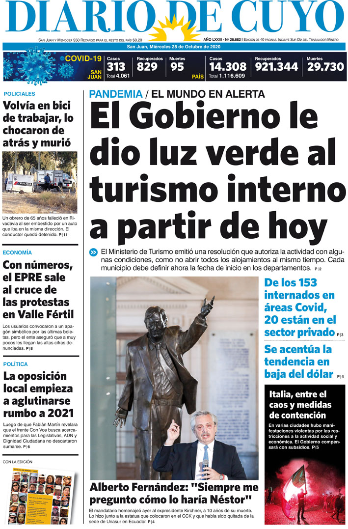 Diario de Cuyo | HOME | Noticias Tapa Edición 28 de Octubre del 2020 Por Redacción Diario de Cuyo 27/10/2020 · 0:00 Escuchar la noticia Escuchar la noticia Your browser doesn’t support HTML5 audio Ver los comentarios ›