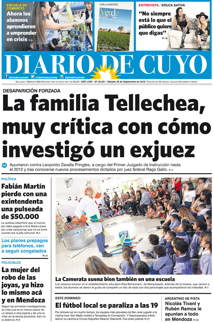 Diario de Cuyo | HOME | Noticias | Tapa Edición Tapa Edición 28 de Septiembre 2019 Por Redacción Diario de Cuyo 28/09/2019 · 0:00 Escuchar la noticia Escuchar la noticia Your browser doesn’t support HTML5 audio Tapa Edición Ver los comentarios ›