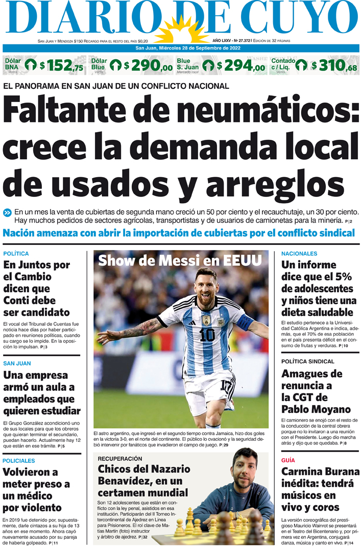 Diario de Cuyo | HOME | Noticias Tapa Edición 28 de Septiembre del 2022 Por Redacción Diario de Cuyo 27/09/2022 · 0:00 Escuchar la noticia Escuchar la noticia Your browser doesn’t support HTML5 audio Ver los comentarios ›