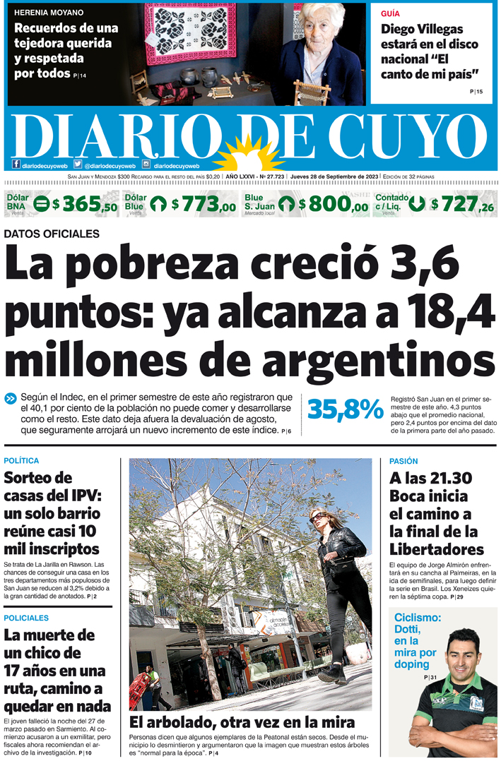 Diario de Cuyo | HOME | Noticias Tapa Edición 28 de Septiembre del 2023 Por Redacción Diario de Cuyo 27/09/2023 · 0:00 Escuchar la noticia Escuchar la noticia Your browser doesn’t support HTML5 audio Ver los comentarios ›