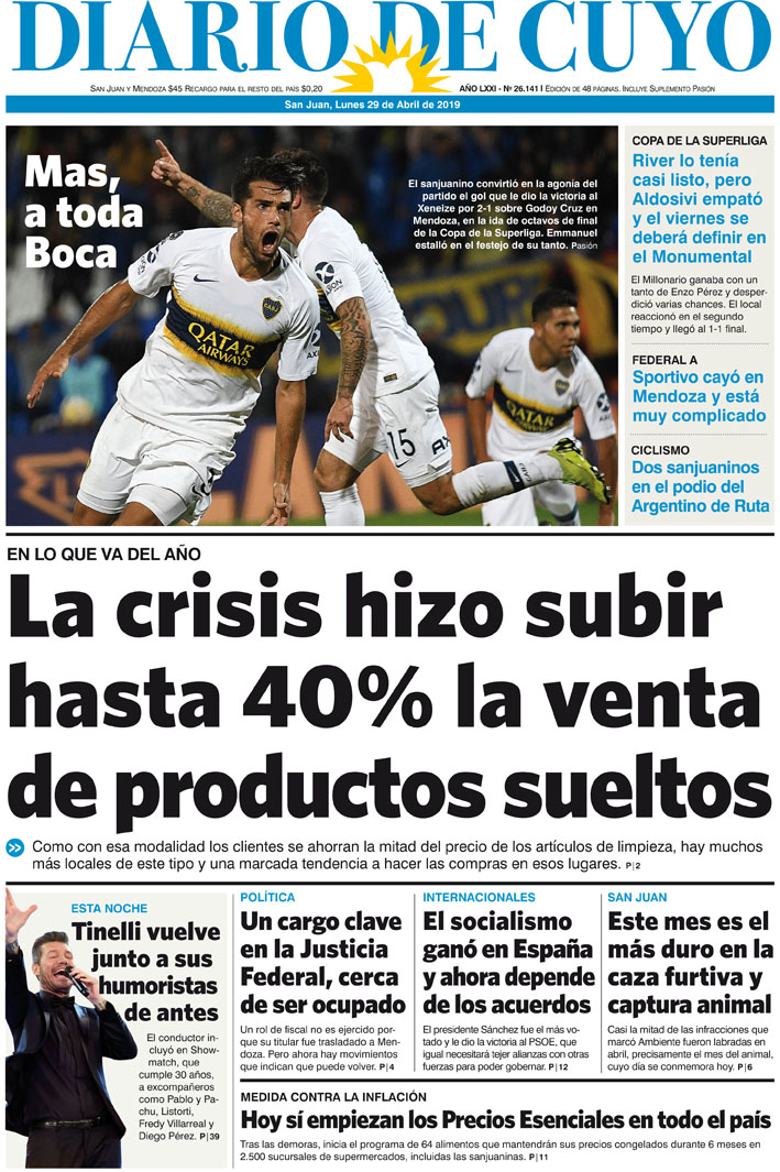 Diario de Cuyo | HOME | Noticias | Tapa Edición Tapa Edición 29 de Abril 2019 Por Redacción Diario de Cuyo 28/04/2019 · 0:00 Escuchar la noticia Escuchar la noticia Your browser doesn’t support HTML5 audio Tapa Edición Ver los comentarios ›