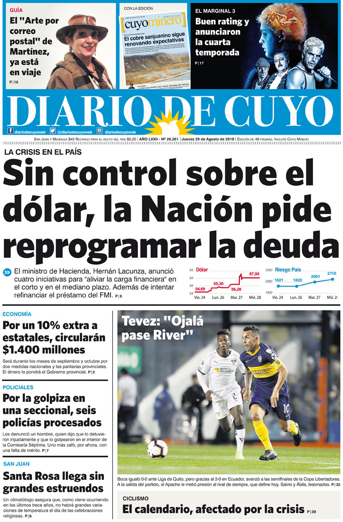 Diario de Cuyo | HOME | Noticias | Tapa Edición Tapa Edición 29 de Agosto 2019 Por Redacción Diario de Cuyo 28/08/2019 · 0:00 Escuchar la noticia Escuchar la noticia Your browser doesn’t support HTML5 audio Tapa Edición Ver los comentarios ›