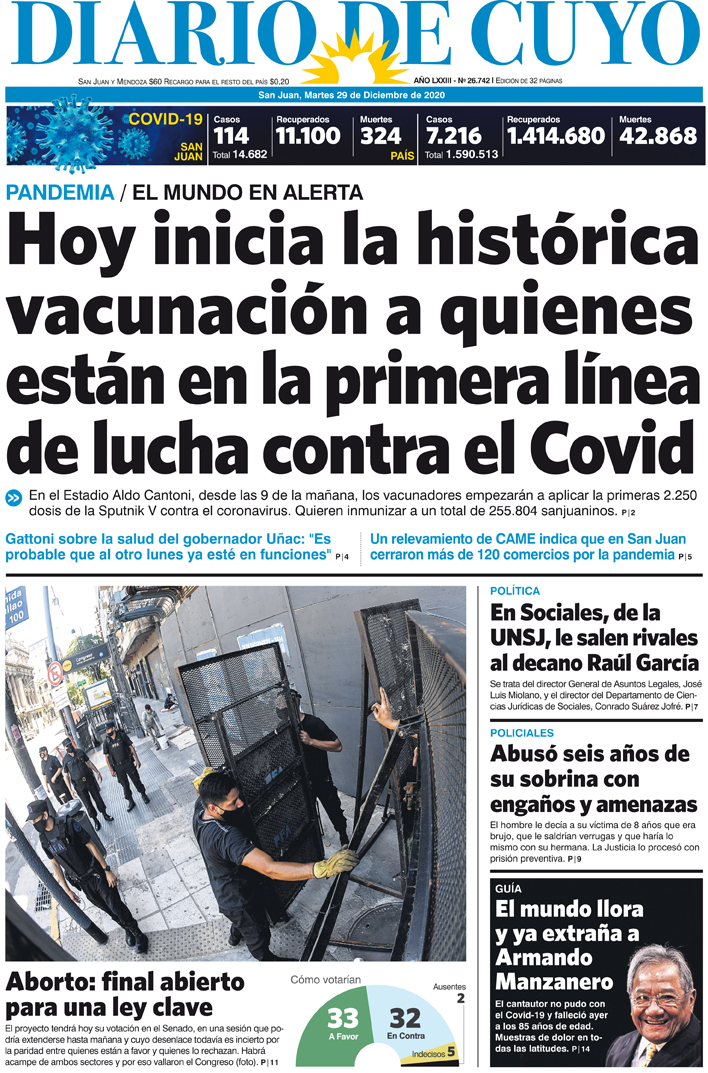 Diario de Cuyo | HOME | Noticias Tapa Edición 29 de Diciembre del 2020 Por Redacción Diario de Cuyo 28/12/2020 · 0:00 Escuchar la noticia Escuchar la noticia Your browser doesn’t support HTML5 audio Ver los comentarios ›