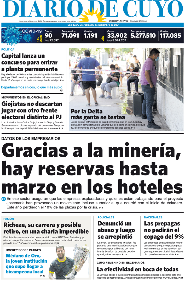 Diario de Cuyo | HOME | Noticias Tapa Edición 29 de Diciembre del 2021 Por Redacción Diario de Cuyo 28/12/2021 · 0:00 Escuchar la noticia Escuchar la noticia Your browser doesn’t support HTML5 audio Ver los comentarios ›
