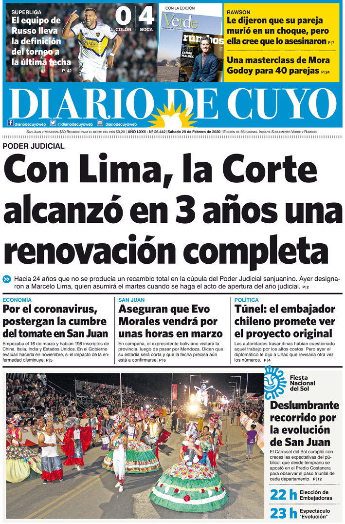 Diario de Cuyo | HOME | Noticias | Tapa Edición Tapa Edición 29 de Febrero de 2020 Por Redacción Diario de Cuyo 29/02/2020 · 0:00 Escuchar la noticia Escuchar la noticia Your browser doesn’t support HTML5 audio Tapa Edición Ver los comentarios ›