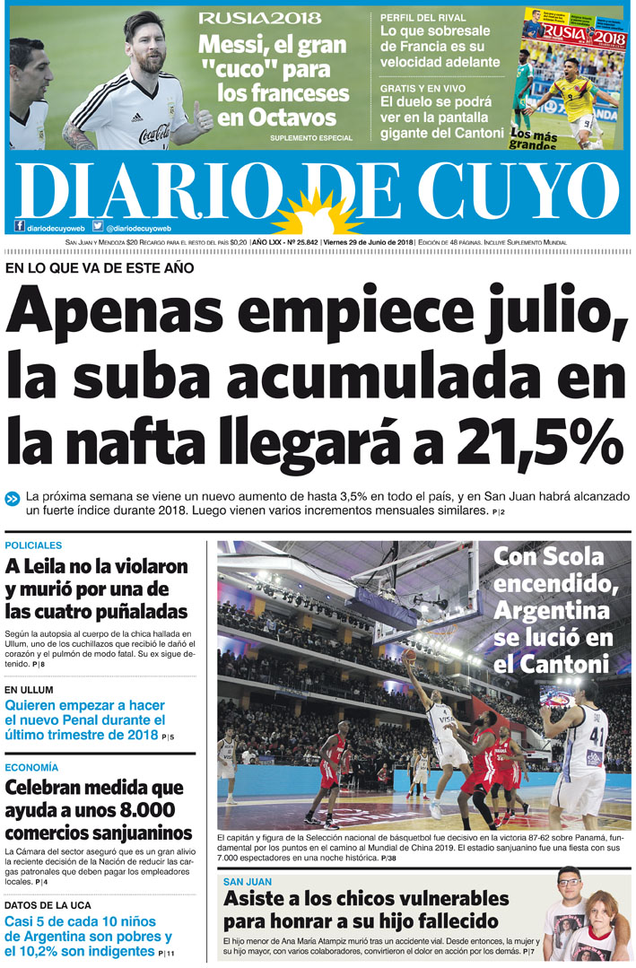 Diario de Cuyo | HOME | Noticias | Tapa Edición Tapa Edición 29 de Junio 2018 Por Redacción Diario de Cuyo 28/06/2018 · 0:00 Escuchar la noticia Escuchar la noticia Your browser doesn’t support HTML5 audio Tapa Edición Ver los comentarios ›