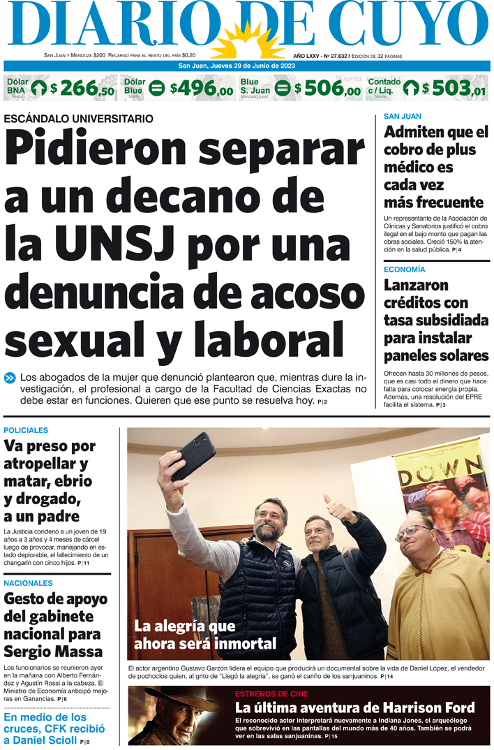 Diario de Cuyo | HOME | Noticias Tapa Edición 29 de Junio del 2023 Por Redacción Diario de Cuyo 28/06/2023 · 0:00 Escuchar la noticia Escuchar la noticia Your browser doesn’t support HTML5 audio Ver los comentarios ›