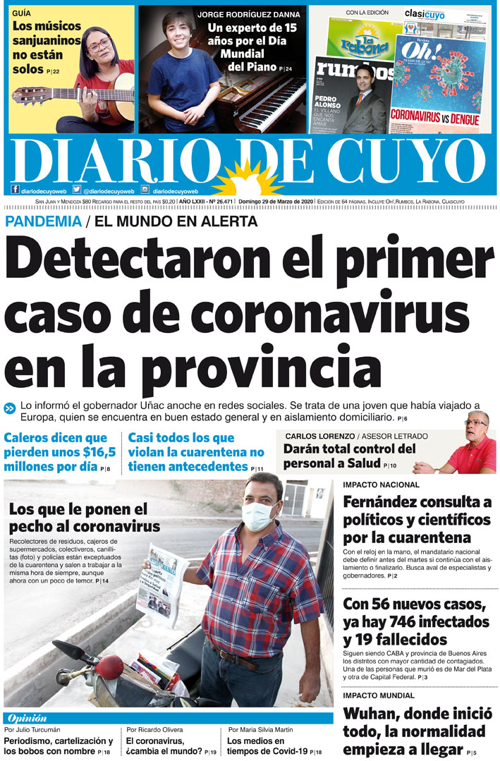 Diario de Cuyo | HOME | Noticias Tapa Edicion 29 de Marzo del 2020 Por Redacción Diario de Cuyo 28/03/2020 · 0:00 Escuchar la noticia Escuchar la noticia Your browser doesn’t support HTML5 audio Ver los comentarios ›