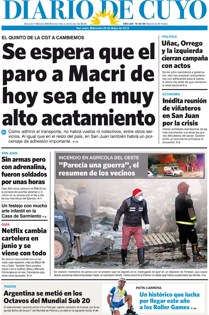 Diario de Cuyo | HOME | Noticias | Tapa Edición Tapa Edición 29 de Mayo 2019 Por Redacción Diario de Cuyo 28/05/2019 · 0:00 Escuchar la noticia Escuchar la noticia Your browser doesn’t support HTML5 audio Tapa Edición Ver los comentarios ›