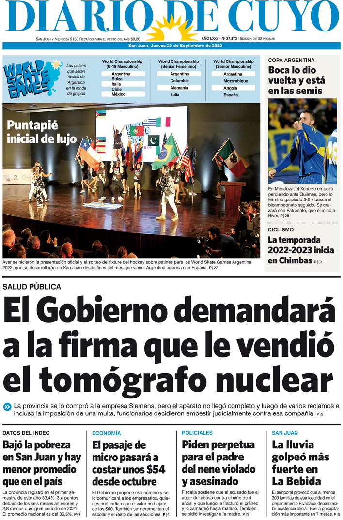 Diario de Cuyo | HOME | Noticias Tapa Edición 29 de Septiembre del 2022 Por Redacción Diario de Cuyo 29/09/2022 · 0:00 Escuchar la noticia Escuchar la noticia Your browser doesn’t support HTML5 audio Ver los comentarios ›