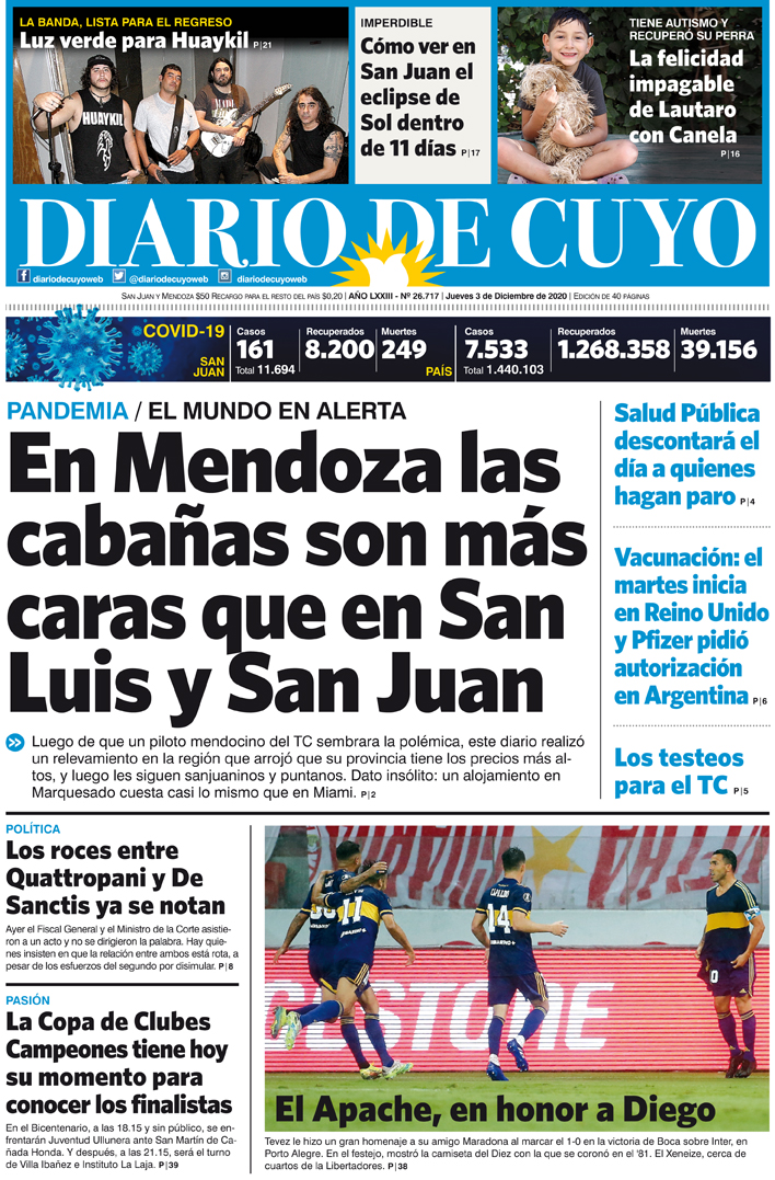 Diario de Cuyo | HOME | Noticias | Tapa Edición Tapa Edición 3 de Diciembre de 2020 Por Redacción Diario de Cuyo 02/12/2020 · 0:00 Escuchar la noticia Escuchar la noticia Your browser doesn’t support HTML5 audio Tapa Edición Ver los comentarios ›