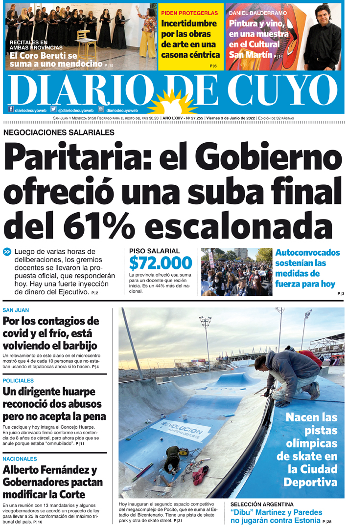 Diario de Cuyo | HOME | Noticias Tapa Edición 3 de Junio de 2022 Por Redacción Diario de Cuyo 02/06/2022 · 0:00 Escuchar la noticia Escuchar la noticia Your browser doesn’t support HTML5 audio Ver los comentarios ›