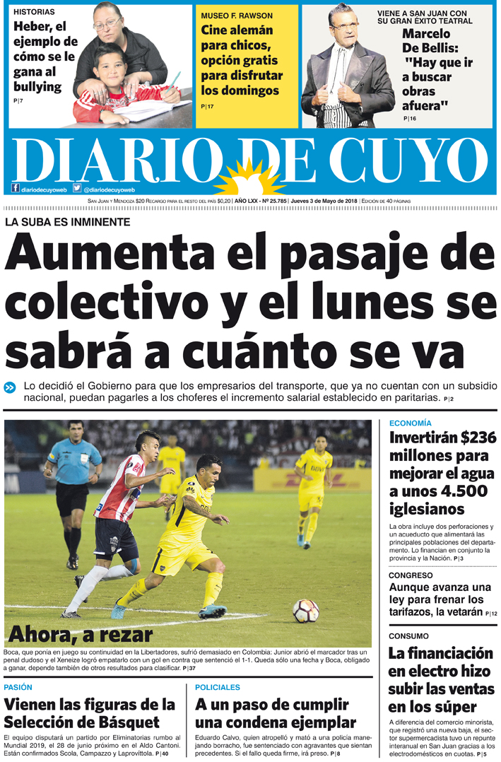 Diario de Cuyo | HOME | Noticias | Tapa Edición Tapa Edición 3 de Mayo del 2018 Por Redacción Diario de Cuyo 02/05/2018 · 0:00 Escuchar la noticia Escuchar la noticia Your browser doesn’t support HTML5 audio Tapa Edición Ver los comentarios ›