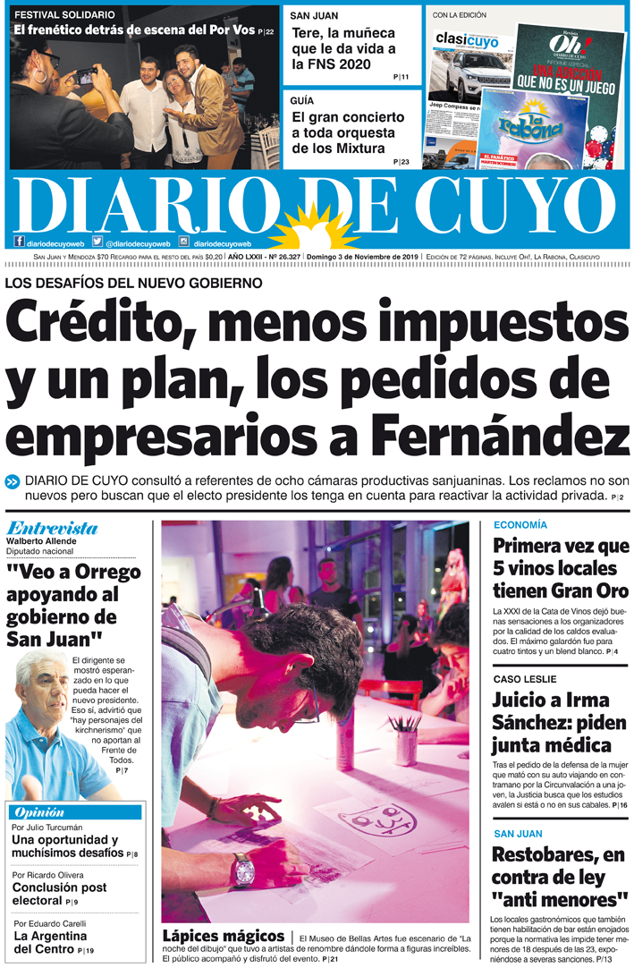 Diario de Cuyo | HOME | Noticias | Tapa Edición Tapa Edición 3 de Noviembre de 2019 Por Redacción Diario de Cuyo 03/11/2019 · 0:00 Escuchar la noticia Escuchar la noticia Your browser doesn’t support HTML5 audio Tapa Edición Ver los comentarios ›