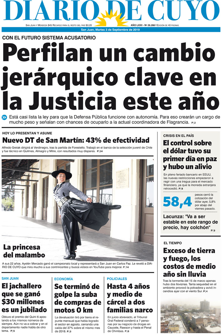 Diario de Cuyo | HOME | Noticias | Tapa Edición Tapa Edición 3 de Septiembre 2019 Por Redacción Diario de Cuyo 02/09/2019 · 0:00 Escuchar la noticia Escuchar la noticia Your browser doesn’t support HTML5 audio Tapa Edición Ver los comentarios ›